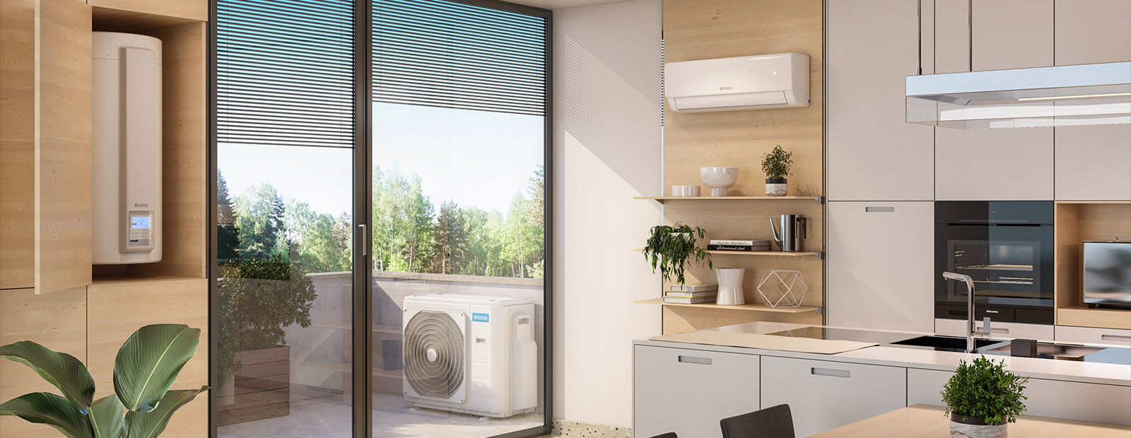 L’impianto si compone di una unità esterna, un serbatoio di accumulo ACS e fino a 3 unità interne. Rispetto ai sistemi che gestiscono separatamente climatizzazione e produzione di ACS, Nexya All-in-One è più efficiente, perchè recupera il calore espulso (durante il funzionamento in raffrescamento) per la produzione di ACS ed è quindi ideale sia nelle nuove costruzioni sia negli interventi di riqualificazione energetica.
