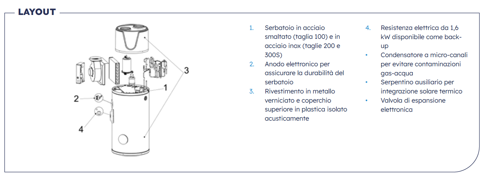 Pompa di calore di calore aria-acqua Olimpia Splendid che permette di produrre ACS in modo efficiente e con un GWP vicino allo zero, raggiugendo temperature fino a 75°C.
